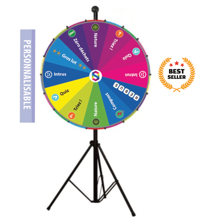 Avec sa roue de la fortune colorée, votre stand devient un véritable aimant à visiteurs.